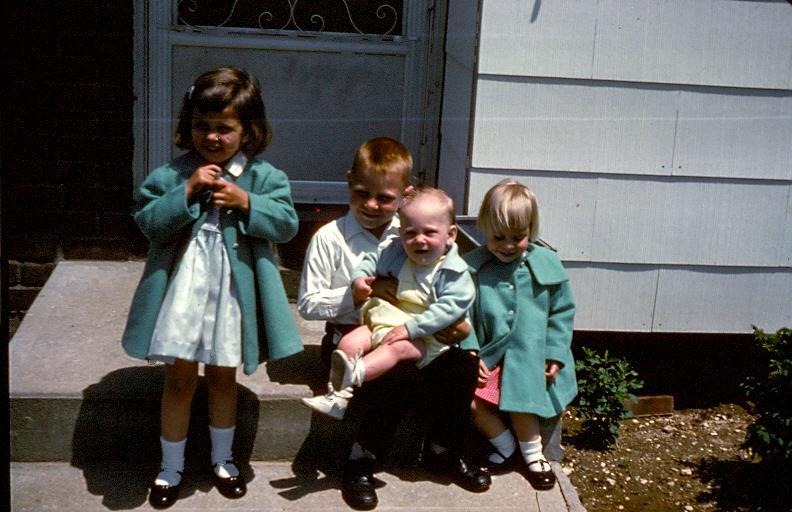 In an old photograph edged in white and dating from the early 1960s, there are four children in front of a typical suburban home in the middle of Long Island. Two sisters are wearing identical outfits: white polyester dresses with puffy crinoline slips barely grazing their kneecaps and teal button down wool coats, white kneehigh socks and black patent leather Mary Janes. The eldest son is wearing a white button down cotton shirt and black dress pants, the youngest son donned in yellow short overalls, white tee shirt and teal sweater. It’s Easter Sunday and the “first family” is wearing their best church clothing. Michael is front and center, sitting on the concrete stoop, Arthur, Jr. (a.k.a. “Baby Arthur”) perched on Michael’s lap while Kathy stands to his right and Maureen sits to his left. Baby Arthur was also three-years-old when his life ended.